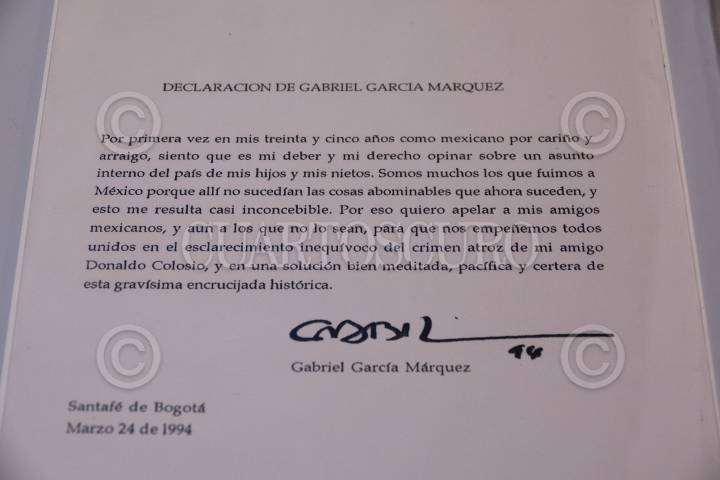 Aspectos de la exposición Gabriel García Márquez. La creación de un escritor global en el Museo de Arte Moderno, donde se muestra la carta escrita por él tras el asesinato de Luis Donaldo Colosio.