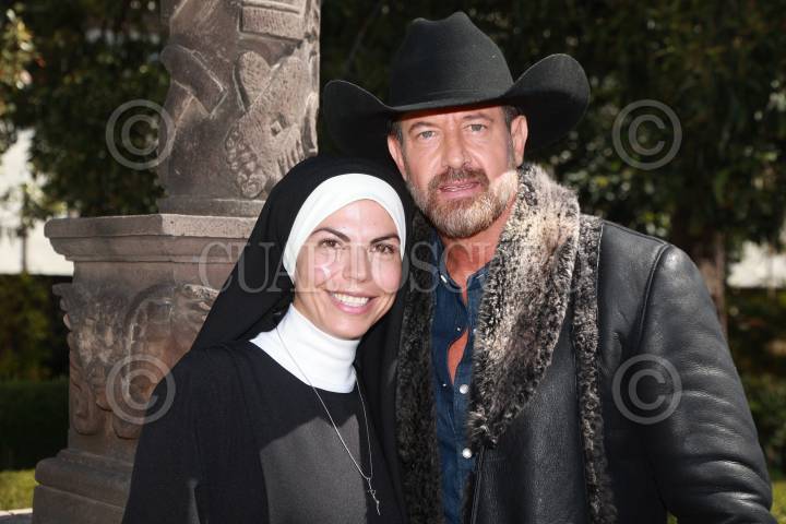 CIUDAD DE MÉXICO, 25FEBRERO2025. Los protagonistas Africa Zabala y Gabriel Soto durante el Pizarrazo por inicio de grabación de la telenovela Monteverde, producción de Televisa Univision en la parroquia de San Pedro Apóstol. FOTO: EDGAR NEGRETE LIRA/CUARTOSCURO.COM