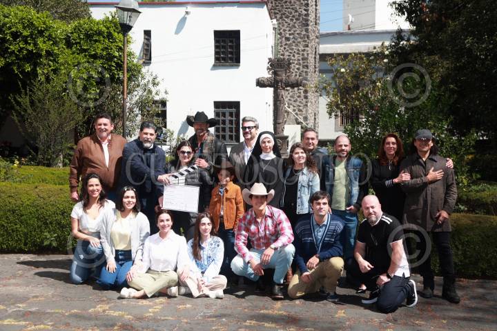 CIUDAD DE MÉXICO, 25FEBRERO2025. Parte del elenco durante el Pizarrazo por inicio de grabación de la telenovela Monteverde, producción de Televisa Univision en la parroquia de San Pedro Apóstol. FOTO: EDGAR NEGRETE LIRA/CUARTOSCURO.COM