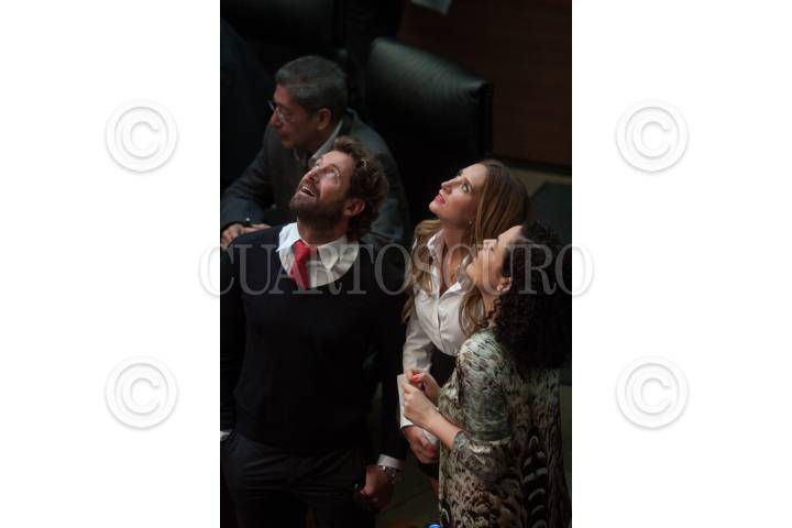 MÉXICO, D.F., 14ABRIL2015.- Los actores Gabriel Soto, Geraldine Bazán y Mariana Gómez del Campo, durante la sesión en el Senado. Soto y Bazán acudieron a la conferencia en donde el senador Maro Antonio Básquez presentó una iniciativa del ley en la cual se busca proteger a los deportistas profesionales que realizan disciplinas como lucha libre, box y artes marciales. FOTO: MOISÉS PABLO /CUARTOSCURO.COM