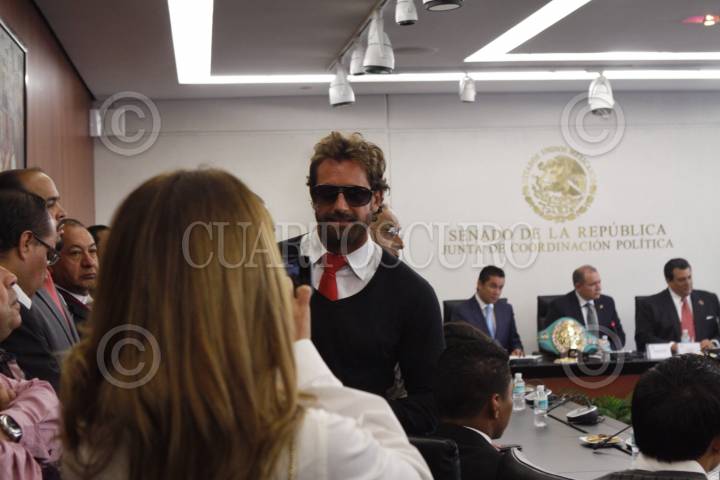 MÉXICO, D.F., 14ABRIL2015.- El actor Gabriel Soto se toma lo foto del recuerdo durante la presentación de la iniciativa de Ley Perro Aguayo, en el Senado. FOTO: MOISÉS PABLO /CUARTOSCURO.COM