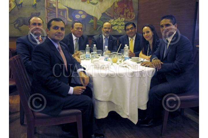 MÉXICO, D.F., 27AGOSTO2012.- Ernesto Cordero, nuevo presidente de la mesa directiva del Senado de la República, Jesus Zambrano, presidente de la mesa directiva del PRD, Gustavo Madero, presidente del PAN, Miguel Barboza, senador del PRD, y Gabriela Cuevas, senadore del PAN, charlan durante una reunión privada que sostuvieron esta mañana en la cual revisaron la agenda legislativas. FOTO: CUARTOSCURO.COM