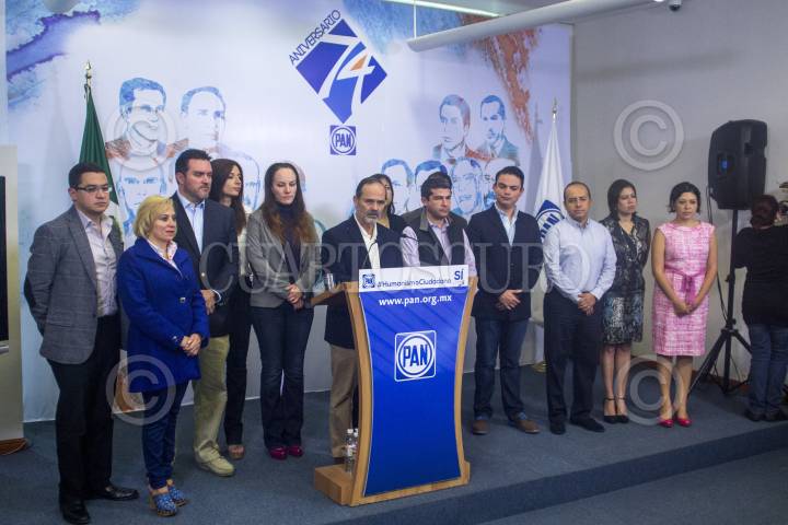 MÉXICO, D.F., 22SEPTIEMBRE2013.- Gustavo Madero, Presidente Nacional del PAN junto con miembros de su bancada en el Senado, Cámara de Diputados y Asamblea legislativa durante la Conferencia que realizaron en la Sede Nacional del PAN para dar a conocer su iniciativa de Ley para regular las marchas en la Ciudad de México. FOTO: ENRIQUE ORDÓÑEZ /CUARTOSCURO.COM