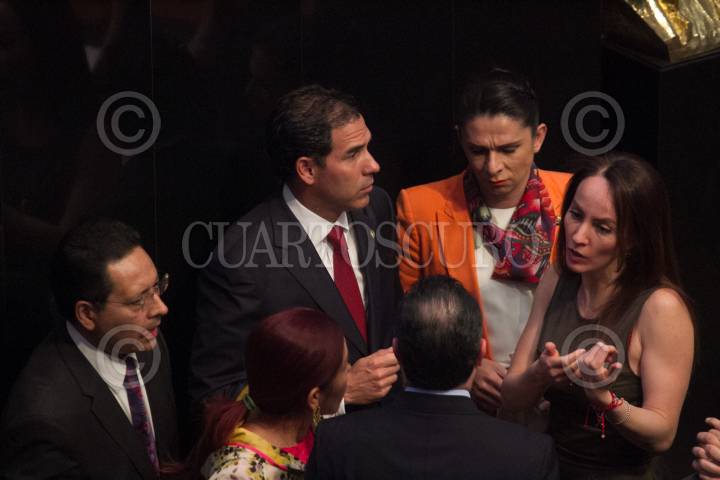 CIUDAD DE MÉXICO, 27ABRIL2017.- Los senadores Pablo Escudero, Ana Gabriela Guevara y Gabriela Cuevas, en la sesión en donde se le tomó protesta de ley a nuevos embajadores de México ante las Repúblicas de Argentina, Brasil, Guatemala, Santa Lucía y Costa Rica. FOTO: MOISÉS PABLO /CUARTOSCURO.COM
