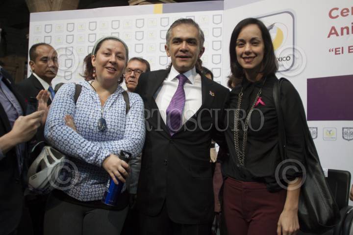 MÉXICO, D.F., 17OCTUBRE2013.- Miguel Ángel Mancera, Jefe de Gobierno, se toma la foto con la cabaretera Ana Francis y la actriz Gabriela Garza, al finalizar la ceremonia conmemorativa del 60 Aniversario del Sufragio Femenino en el Antiguo Palacio del Ayuntamiento. FOTO: MOISÉS PABLO /CUARTOSCURO.COM