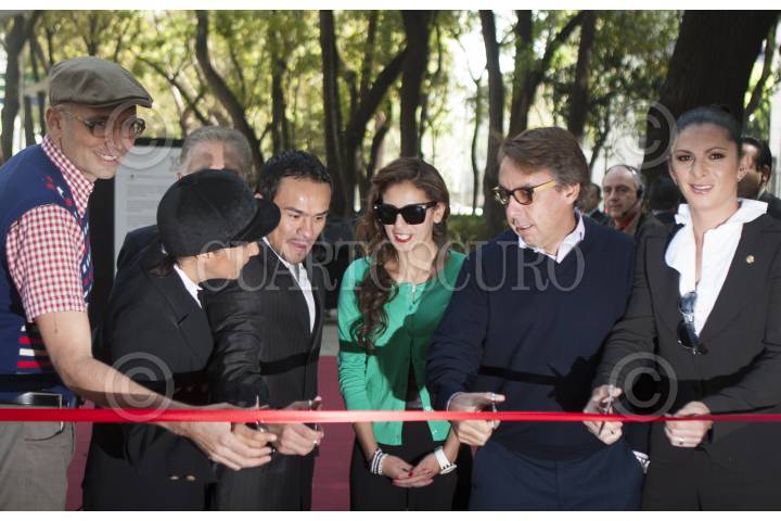 MÉXICO, D.F., 04OCTUBRE2012.- La clavadista, Paola Espinoza, Carlos Padilla, presidente del Comite Olimpico Mexicano, la fotógrafa, Gabriela Saavedra, Emilio Azcarrga Jean, presidente de grupo Televisa, Bernardo de la Garza, Director de la Comisión Nacional del Deporte y la directora del Museo de la Ciudad de México fueron invitados especiales a la inuaguración de la exposición, "100% Extraordinarios" de Gabriela Saavedra y Gabriel Rozycki, la mañana de hoy en Paseo de la Reforma y la cual retrata a los deportistas mas sobresalientes de los último años en cada una de las ramas que desarrollan. FOTO: FRANCISCO RODRÍGUEZ /CUARTOSCURO.COM