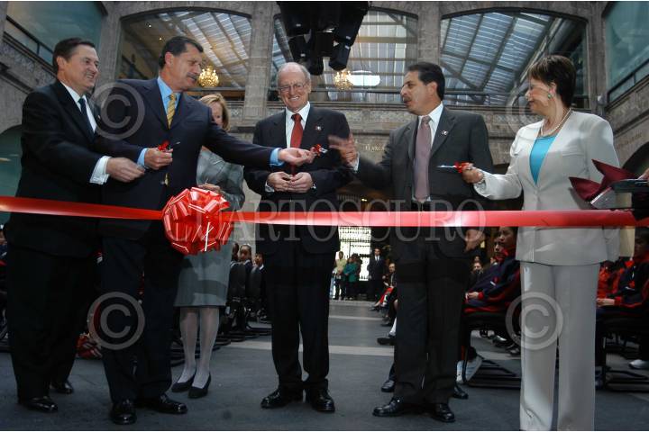 México D.F, 10FEB2004.- Gaetan Lavertu, embajador de Canadá en México, junto con los senadores, Enrique Jackson, Jesús Ortega y Silvia Hernández cortan el liston inaugural de la exposición fotografica INUKSUK que se encuentra en el senado de la república. FOTO: Germán Romero/CUARTOSCURO.COM