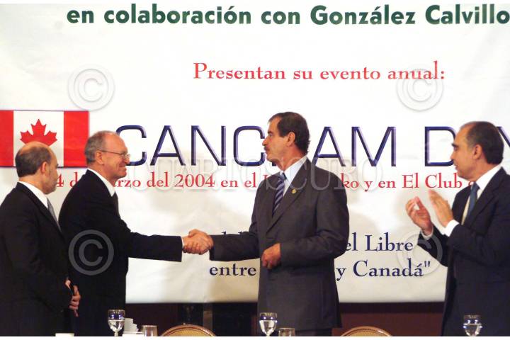 México D.F 04 Marzo del 2004.- Gaetan Lavertu, embajador de Canada en México saluda al presidente Vicente Fox Quesada, en el desayuno con motivo del "Cancham Day" de la Camara de Comercio de Canada en México. FOTO: Eunice Adorno/CUARTOSCURO.COM