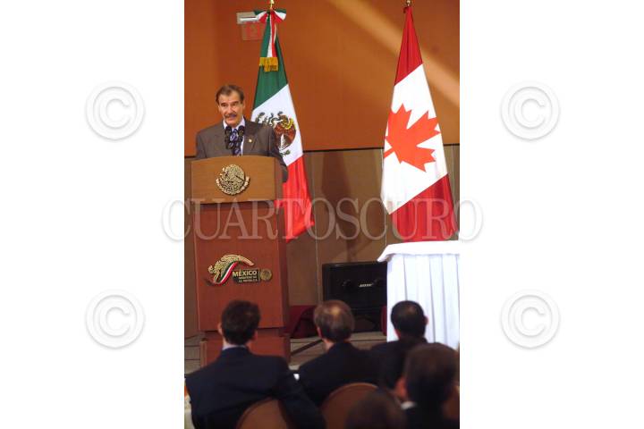 México D.F 04 Marzo del 2004.- EL presidente Vicente Fox Quesada, durante su discurso en la reunión del "Cancham Day" de la Camara de Comercio de Canada en México. FOTO: Eunice Adorno/CUARTOSCURO.COM