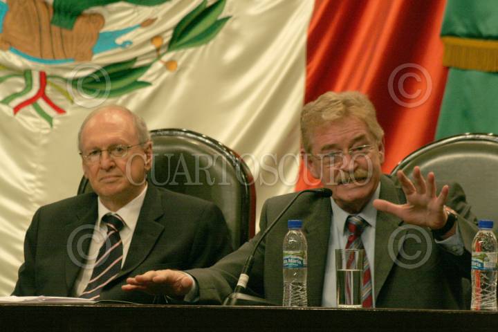 MÉXICO, D.F. 25JULIO2007.- El embajador de Canadá en México, Gaetan Lavertu y Javier González Garza, coordinador parlamentario del PRD durante el foro México en el mundo, política de estado, en la Cámara de Diputados. FOTO: PAOLA HIDALGO/CUARTOSCURO.COM