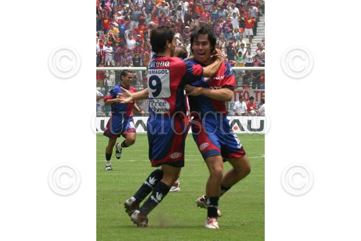 MEXICO, D.F. 01MAYO2005.- Sebastian González " chamagol" y Sebastian Galaz, festejan uno de los dos goles anotados durante el primer tiempo del partido de claudsura 2005, contra el Necaxa. Los Rayos Rojos quedaron triunfadores con tres goles. FOTO: Sandra Perdomo/CUARTOSCURO.COM