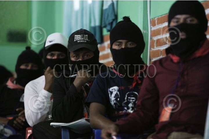 SAN CRISTÓBAL DE LAS CASAS, CHIAPAS, 17ABRIL2018.- Zapatistas durante el segundo día del conversatorio "Miradas, escuchas, palabras: ¿prohibido pensar?", encuentro entre el Concejo Indígena de Gobierno, las redes de apoyo del CIG, periodistas y artistas y el Ejército Zapatista de Liberación Nacional (EZLN) para hacer una evaluación sobre el recorrido y la participación del CIG y Marichuy como aspirante a candidata independiente. FOTO: DALIRI OROPEZA /CUARTOSCURO.COM