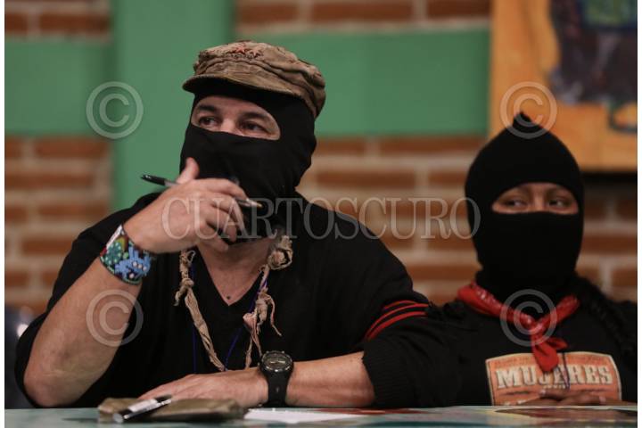 SAN CRISTÓBAL DE LAS CASAS, CHIAPAS, 17ABRIL2018.- El Subcomandante Insurgente Galeano, durante el segundo día del conversatorio "Miradas, escuchas, palabras: ¿prohibido pensar?", encuentro entre el Concejo Indígena de Gobierno, las redes de apoyo del CIG, periodistas y artistas y el Ejército Zapatista de Liberación Nacional (EZLN) para hacer una evaluación sobre el recorrido y la participación del CIG y Marichuy como aspirante a candidata independiente. FOTO: DALIRI OROPEZA /CUARTOSCURO.COM