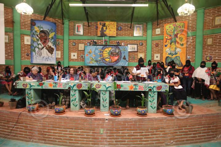 SAN CRISTOBAL DE LAS CASAS, 21ABRIL2018.- Séptima sesión de actividades en el conversatorio "Miradas, escuchas, palabras: ¿prohibido pensar?", encuentro entre el Concejo Indígena de Gobierno, las redes de apoyo del CIG, periodistas y artistas y el Ejército Zapatista de Liberación Nacional (EZLN) para hacer una evaluación sobre el recorrido y la participación del CIG y Marichuy como aspirante a candidata independiente. FOTO: DALIRI OROPEZA /CUARTOSCURO.COM
