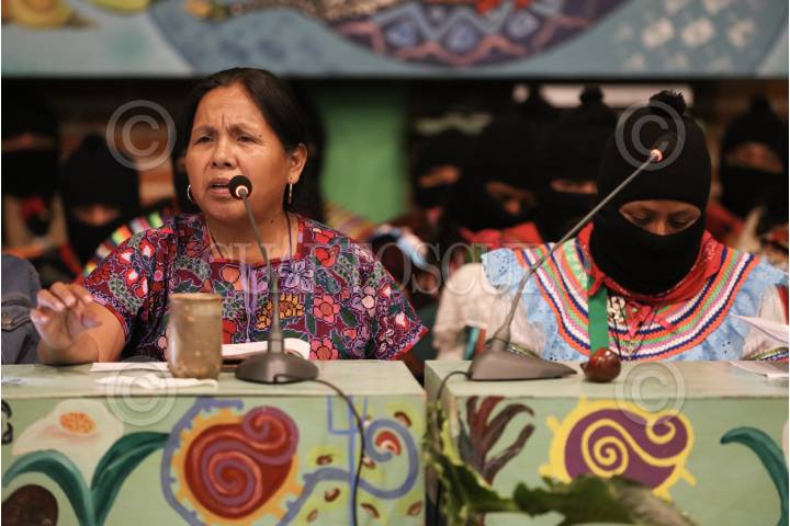 SAN CRISTÓBAL DE LAS CASAS, CHIAPAS, 17ABRIL2018.- María de Jesús Patricio Martínez (Marichuy), vocera del Concejo Indígena de Gobierno y el Comandante Tacho, dirante la tarde de ayer como primer día de actividades del conversatorio "Miradas, escuchas, palabras: ¿prohibido pensar?", encuentro entre el Concejo Indígena de Gobierno, las redes de apoyo del CIG, periodistas y artistas y el Ejército Zapatista de Liberación Nacional (EZLN) para hacer una evaluación sobre el recorrido y la participación del CIG y Marichuy como aspirante a candidata independiente. FOTO: DALIRI OROPEZA /CUARTOSCURO.COM