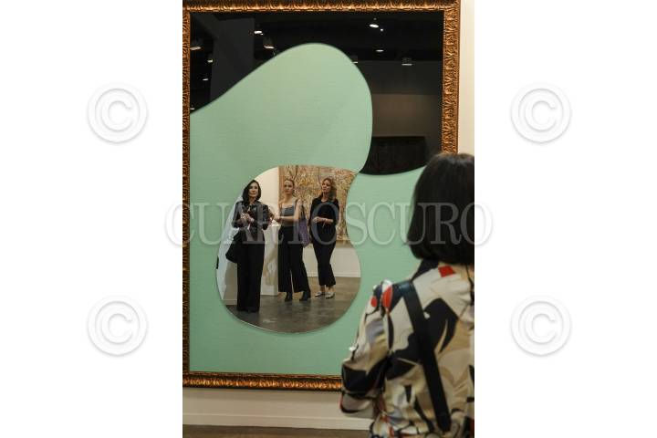 NAUCALPAN, ESTADO DE MÉXICO, 05FEBRERO2025.- Asistentes observan su reflejo en la obra “Color and Light” de Michelangelo Pistoletto durante el primer día de actividades de la 21ª edición de ZONA MACO, la feria de arte más grande Latinoamérica, en el Centro de Exposiciones Citibanamex. En esta ocasión fueron convocadas galerías 199 galerías, así como proyectos artísticos provenientes de 27 países. FOTO: GALO CAÑAS/CUARTOSCURO.COM
