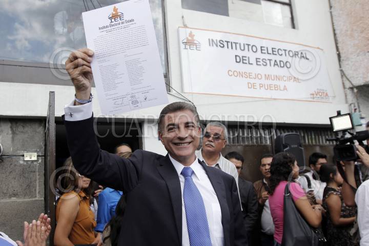 PUEBLA, PUEBLA, 12JULIO2013.- El presidente municipal electo de la capital poblana, Antonio Gali Fayad, recibió su constancia de mayoría de manos del presidente del Consejo Municipal Electoral que lo acredita para obtener el cargo por el periodo 2014-2018. FOTO: HILDA RIOS /CUARTOSCURO.COM