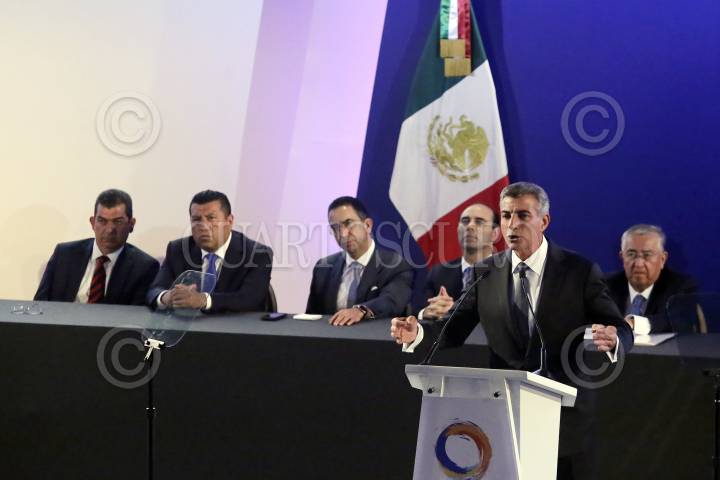 PUEBLA, PUEBLA; 08MARZO2017.- El gobernador de Puebla; Antonio Gali Fayad, acompañado por José Antonio Meade, secretario de Hacienda y Credito Público y Rafael Pacchiano Alamán, secretario del Medio Ambiente y Recursos Naturales, realizaron firma de convenio para el financiamiento de unidades del Transporte Público para la entidad poblana. FOTO: HILDA RÍOS /CUARTOSCURO.COM