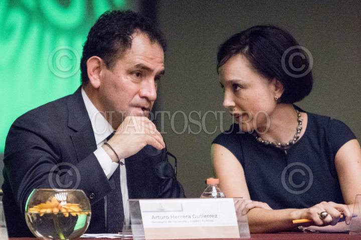 Arturo Herrera Gutiérrez, Secretario de Hacienda, y Galia Borja, titular de la Tesorería de la Federación.