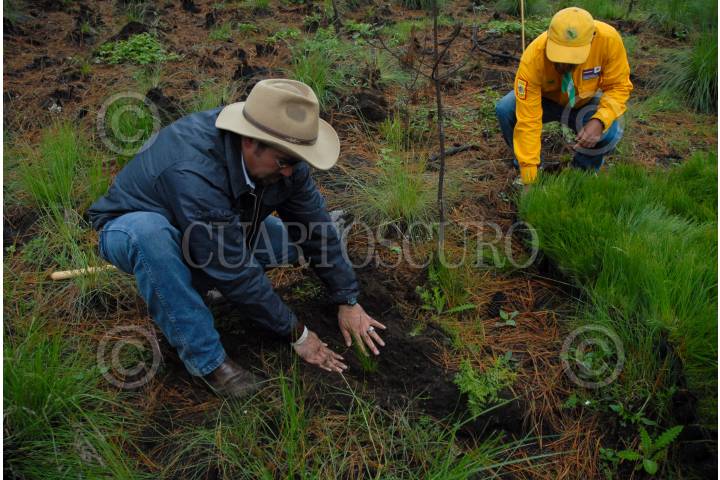 MÉXICO D.F. 05JULIO2008.- Esta mañana comenzó la campaña de reforestación en distintos puntos del país y uno de los puntos más apoyados fueron los predios de Uñas de Gato de la localidad de Topilejo en la ciudad de México en la imagen el Ing. Miguel Gallegos Mora, Subgerente Operativo de la Región 3 de la CONAFOR. FOTO: FELIPE CASTELLANOS/CUARTOSCURO.COM