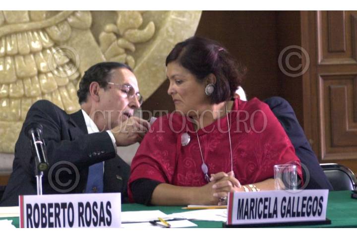 México D.F 22 Abril 2004.- Roberto Rosas y Marcela Gallegos, integrantes del Instituto Mexicano en el Extrangero realizaron una conferencia de prensa para hablar sobre el voto de los mexicanos en los Estados Unidos. FOTO: Eunice Adorno/CUARTOSCURO.COM