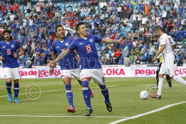 MÉXICO, D.F., 23AGOSTO2014.- Rogelio Chávez anotó el primer gol de la Máquina del Cruz Azul en el juego que disputaron contra los Gallos Blancos del Querétaro, los cementeros vencen por 2-1 a los Gallos Blanco del Querétaro, en el Estadio Azul. FOTO: MOISÉS PABLO /CUARTOSCURO.COM