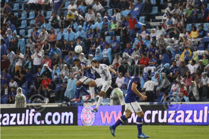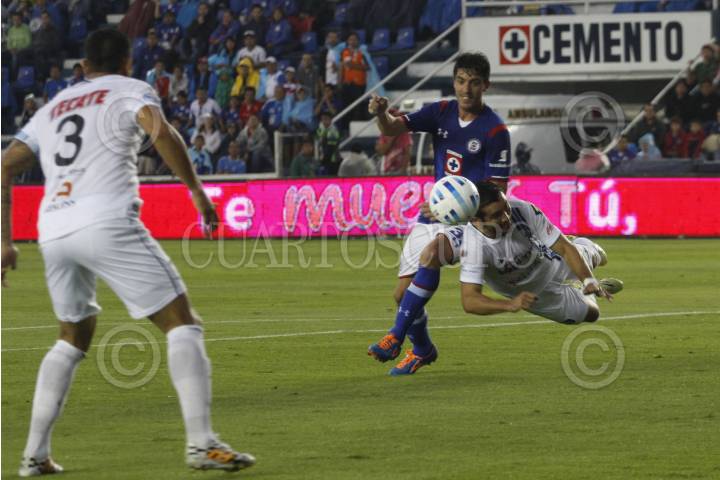 MÉXICO, D.F., 23AGOSTO2014.- Mariano Pavone, delantero del Cruz Azul, disputa un balón divido en el área chica de los Gallos Blancos del Querétaro, la máquina vence por 2-1 a los Gallos Blanco del Querétaro. FOTO: MOISÉS PABLO /CUARTOSCURO.COM