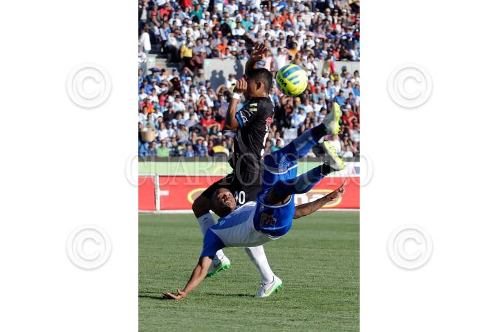 PUEBLA, PUEBLA, 28FEBRERO2015.- Jhon Pajoy intenta conectar de chilena en partido entre el Puebla de la Franja y los Gallos Blancos del Querétaro correspondiente a la jornada 8 del torneo de clausura 2015 celebrado en el estadio universitario de la BUAP. FOTO: HILDA RÍOS /CUARTOSCURO.COM