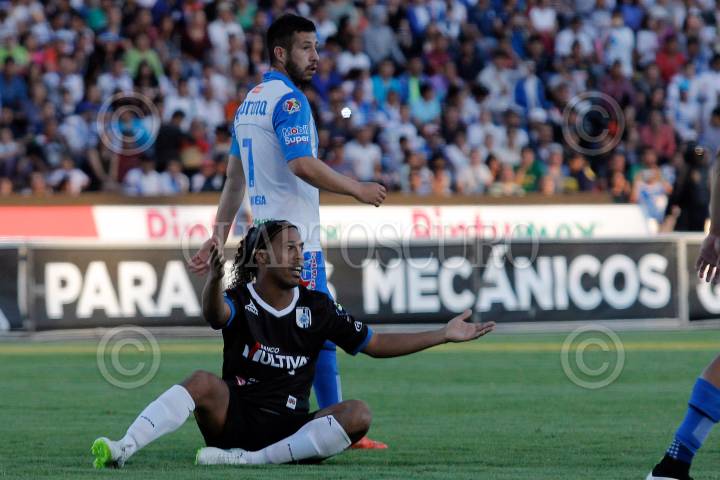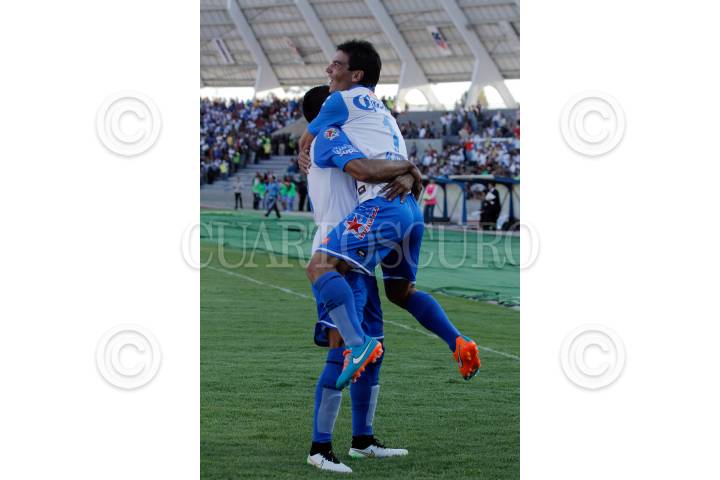 PUEBLA, PUEBLA, 28FEBRERO2015.- Matías Alustiza, anotó dos goles para conseguir el triunfo 4-1 del Puebla de la Franja ante los Gallos Blancos del Querétaro en partido correspondiente a la jornada 8 del torneo de clausura 2015 celebrado en el estadio universitario de la BUAP. FOTO: HILDA RÍOS /CUARTOSCURO.COM