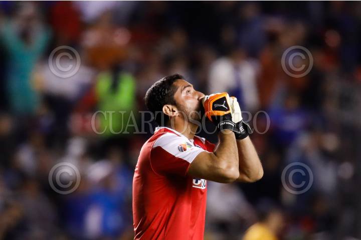 QUERÉTARO, QUERÉTARO, 28NOVIEMBRE2018.- Jesús Corona, portero de la Máquina del Cruz Azul, celebra la victoria de su equipo de 2-0 ante los Gallos del Querétaro, en partido de ida de los cuartos de final de la Liga MX. FOTO: VÍCTOR PICHARDO /CUARTOSCURO.COM