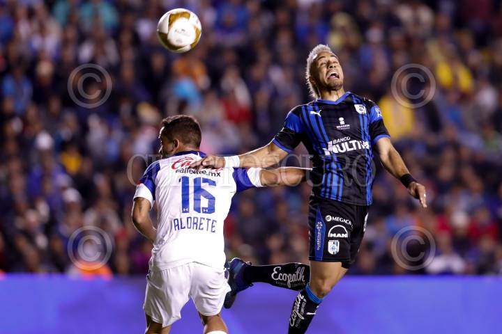 MÉXICO, D.F., 23AGOSTO2014.- El cementero Marco Fabián y George Úlises Corral de los Gallos Blancos, disputan un balón dividido durante el juego entre la Máquina del Cruz Azul y Querétaro, en el Estadio Azul, la máquina se impone por marcador de 2-1. FOTO: MOISÉS PABLO /CUARTOSCURO.COM