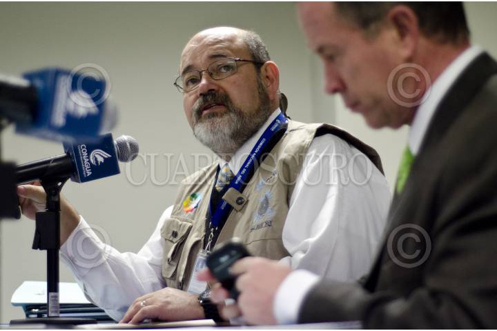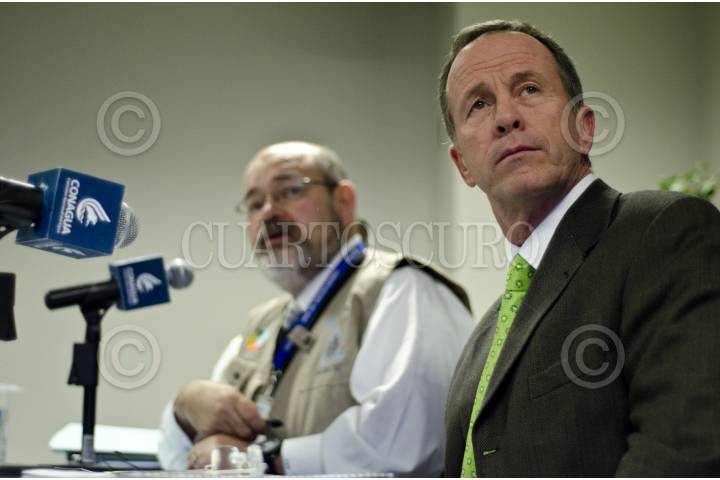 MÉXICO, D.F., 03ENERO2012.- Felipe Adrián Vázquez Gálvez, coordinador general del Servicio Meteorológico Nacional (SMN) y José Luis Luege Tamargo, director de la Comisión Nacional del Agua (Conagua), ofrecieron una conferencia de prensa donde ofrecieron pormenores del Pronóstico Climatológico Enero-Marzo del 2012. Ésto se realizó en las oficinas centrales de esta dependencia al sur de la ciudad de México. FOTO: MISAEL VALTIERRA/CUARTOSCURO.COM