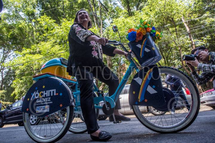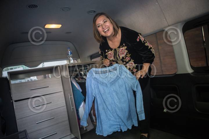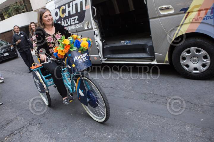 CIUDAD DE MÉXICO, 02ABRIL2018.- Xóchitl Galvez, candidata a senadora por el PAN, presentó la Xóchicleta, y su closet de ropa dentro de su camioneta de campaña. FOTO: TERCERO DÍAZ /CUARTOSCURO.COM