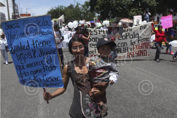 SANTA LUCÍA DEL CAMINO, OAXACA., 27AGOSTO2014.- Familiares, amigos y personas de la sociedad civil marcharon este miércoles en el municipio de Santa Lucía del Camino hacia los Juzgados del Centro ubicados a un costado del penal de Santa María Ixcotel, esto para acudir a la última audiencia programada en el caso del homicidio del menor Gamaliel, quien fuera violado y asesinado el 8 de julio del 2011. La audiencia tuvo que ser pospuesta pues el abogado defensor del presunto homicida, Julio César Ruiz no acudió. FOTO: ARTURO PÉREZ ALFONSO /CUARTOSCURO.COM