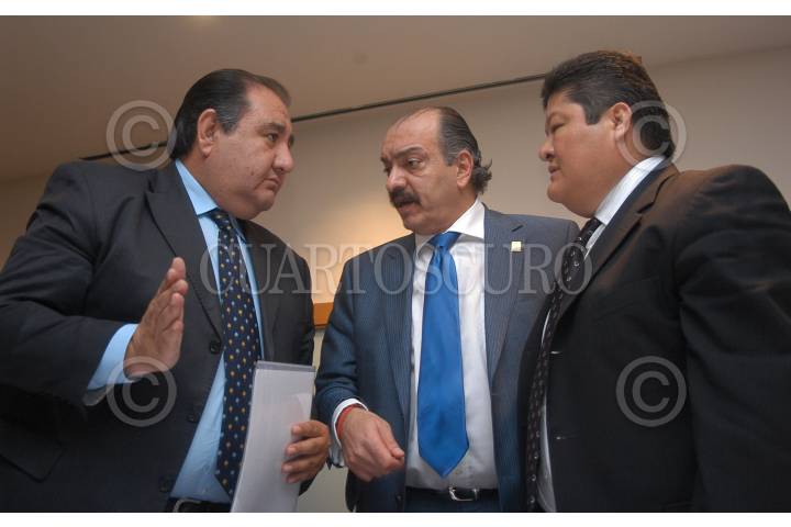 México, D.F., 06OCTUBRE2004.- Francisco Chiguil, Alfredo Hernández Raigosa y Carlos Reyes Gamíz, asambleístas del PRD e integrante del grupo que ayer tomaron el Pleno de la Cámara de Diputados, se reuniron con una comisión para discutir la modificación del 122 constitucional. FOTO: Moisés Pablo/CUARTOSCURO.COM