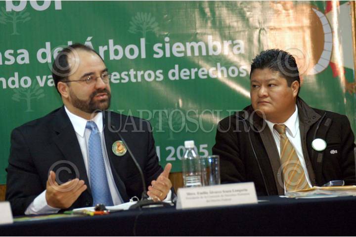MEXICO, D.F. 20ENERO2005.- Emilio Alvarez Icaza, presidente de la Comisión de Derechos Humanos del D.F. y Roberto Carlos Reyes Gámiz, diputado perredista en la celebración del noveno aniversario de la Casa del Árbol de la CDHDF. FOTO: Especial/CUARTOSCURO.COM