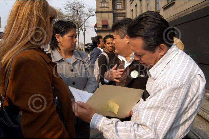 MEXICO, D.F. 21ENERO2005.- Los diputados perredistas Lorena Villavicencio, Roberto Carlos Reyes Gámiz y Julio Escamilla a las afueras de la sede de la Suprema Corte de Justicia de la Nación (SCJN) despúes de intercambiar opiniones con el magistrado presidente, Mariano Azuela, referentes a los casos del Paraje San Juan y el desafuera del jefe de gobierno, Andrés Manuel López Obrador. FOTO: CUARTOSCURO.COM