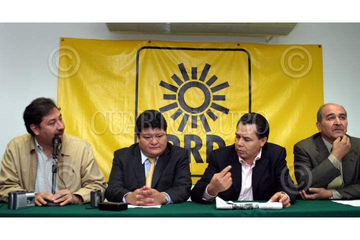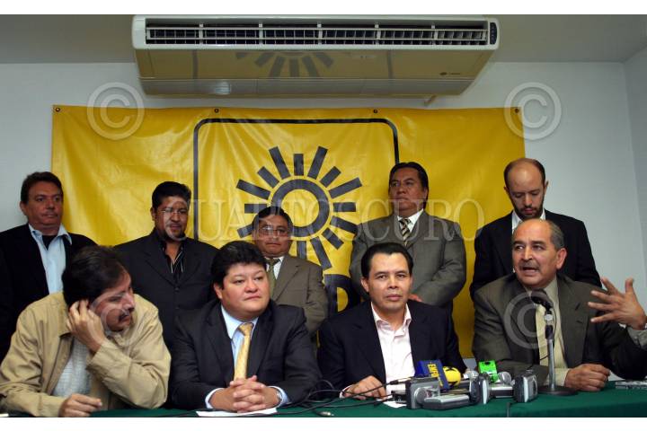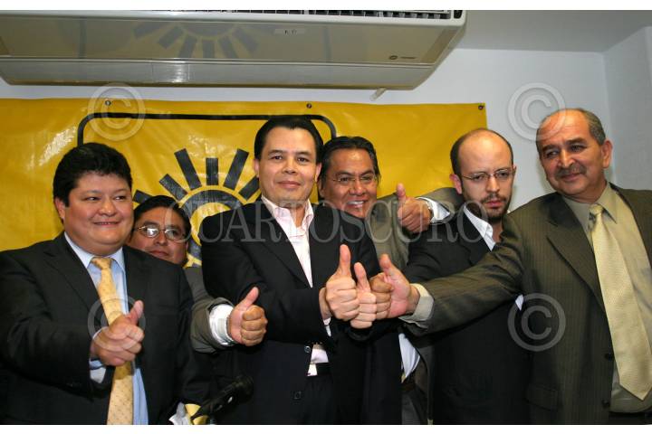 MEXICO, D.F. 03AGOSTO2005.- Al frente los legisladores, Carlos Reyes Gámiz, René Arce, Inti Muñoz, y Juan Guerra, señalaron que a partir de hoy podrá definirse a los tres aspirantes del PRD a la jefatura del Gobierno capitalino como el Tucoi (Todos Unidos por la Izquierda). Los candidatos son Jesús Ortega, Pablo Gómez y Armando Quintero. FOTO: Sandra Perdomo/CUARTOSCURO.COM
