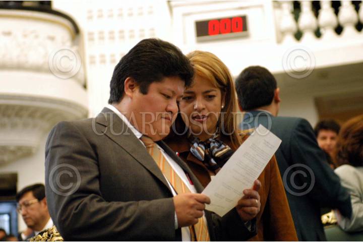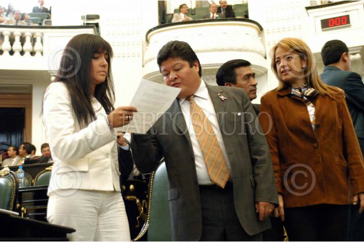 MEXICO, D.F 05ABRIL2005.- Durante la sesión ordinaria de la Asamblea Legislativa, los diputados perredistas Roberto Reyes Gamiz y Lorena Villavicencio. FOTO:CUARTOSCURO.COM
