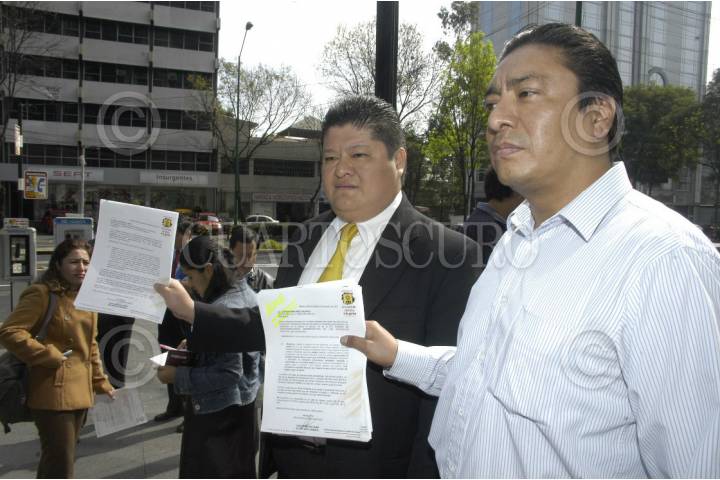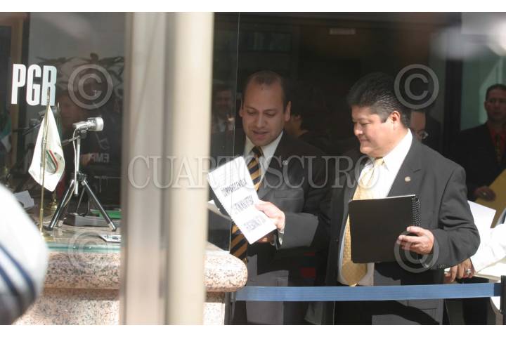 MEXICO, D.F., 02FEBRERO2005.- Julio Cesar Moreno Rivera y Carlos Reye Gamíz, asambleístas del PRD, acudieron a las instalaciones de la PGR para entregar el informe de la comparecencia de Marcelo Ebrard, ex-secretario de la SSP, ante la Asamblea Legíslativa. FOTO: Moisés Pablo/CUARTOSCURO.COM