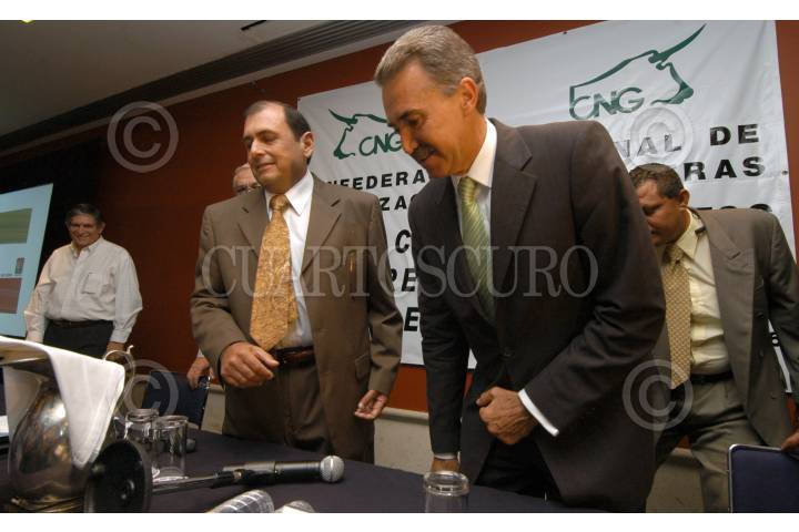 MEXICO D.F. 22MAYO2006.- Roberto Madrazo, candidato presidencial del PRI se reunio con integrantes de la Confederación Nacional de Organizaciones Ganaderas. Oswaldo Chazano, dirigente de ganadero acompaño al abanderado priísta. FOTO: Carlos Guzmán/CUARTOSCURO.COM