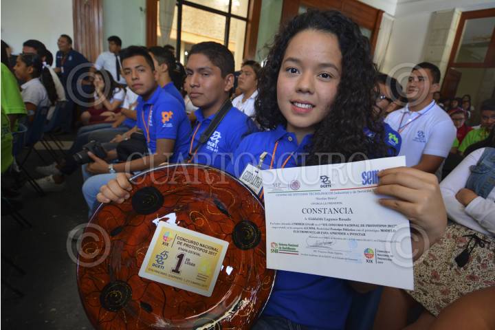 CHILPANCINGO, GUERRERO, 03MARZO2017.- La joven Giddalthi Lagunes, del Cetis 41, obtuvo el primer lugar en el Concurso Nacional de Prototipo 2017 con el proyecto "Electromuscular para aprender a inyectar". FOTO: JOSÉ I. HERNÁNDEZ / CUARTOSCURO.COM