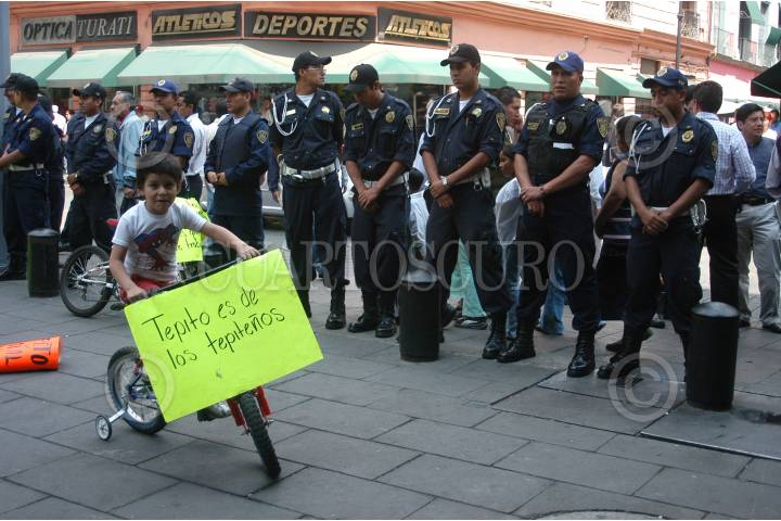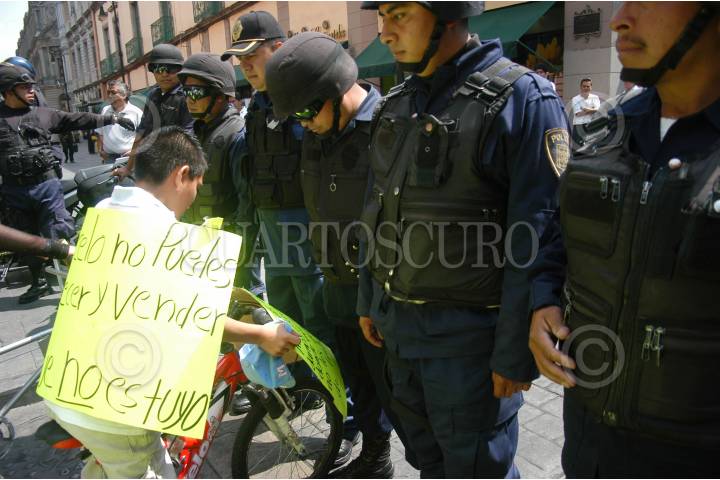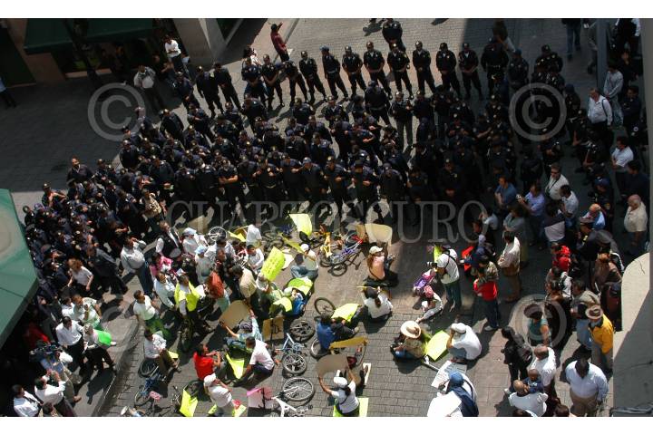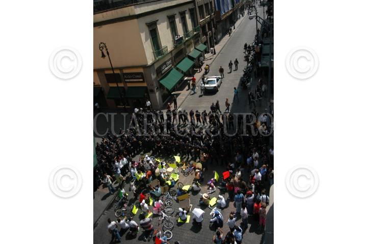 MÉXICO D.F. 02ABRIL2007.-Elementos de la secretaria de seguridad del D.F. impidierón el paso a manifestantes que protestaban encontra de la expropiación del predio conocido como el numero 40 en Tepito, estos en las calles de Madero y Gante en la colonia Centro. FOTO: GUILLERMO PEREA/CUARTOSCURO.COM