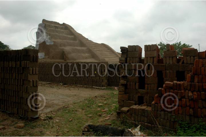 MEDELLIN DE BRAVO, VERACRUZ. 19ABRIL2009.- Después del reportaje transmitido por una televisora local sobre los trabajos de recuperación de vestigios y restauración y del basamento de la llamada "Pirámide de la Joya" o "Teocalli del garabato". Infinidad de curiosos visitan el lugar donde aun funciona una ladrillera. A decir de la investigadora del instituto de antropología de la UNAM, Annick Daneels, se trata de un centro ceremonial perteneciente a la cultura de las remojadas ubicada dentro del centro de Veracruz, construida en su totalidad de barro y cuya edificación en su última etapa llego a medir más de 25 metros hoy perdida a causa del desconocimiento ya que el material fue utilizado para construir ladrillos a pesar que desde el año de 1981 se encuentra catalogada por el INAH. FOTO: JOSE CANDELARIO/CUARTOSCURO.COM
