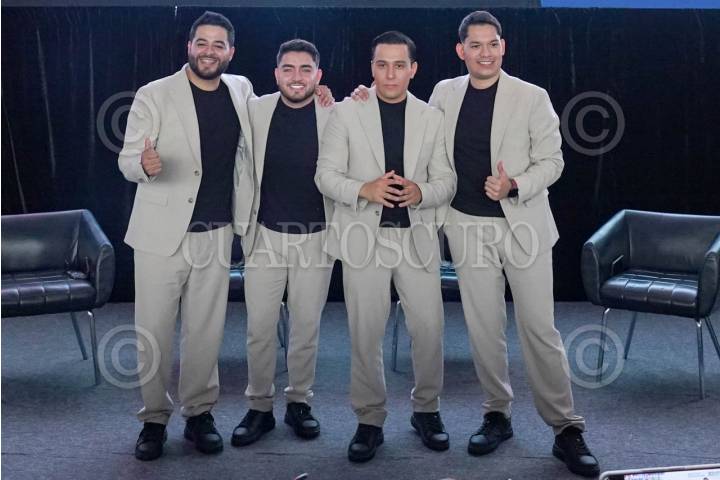 CIUDAD DE MÉXICO 10JUNIO2025.- Salvador Arzarte, Julio Haro, Esaul, García y Juan Carlos integrantes de la Arrolladora Banda Limón, luego de su conferencia a medios de comunicación en la Arena Ciudad de México. FOTO:ROGELIO MORALES /CUARTOSCURO.COM