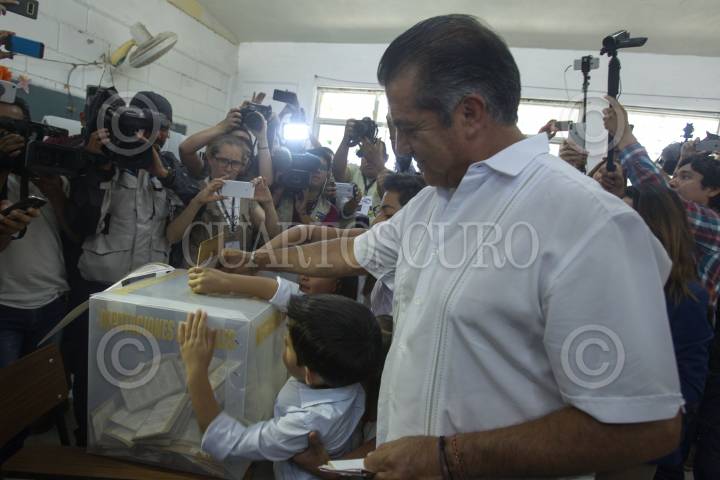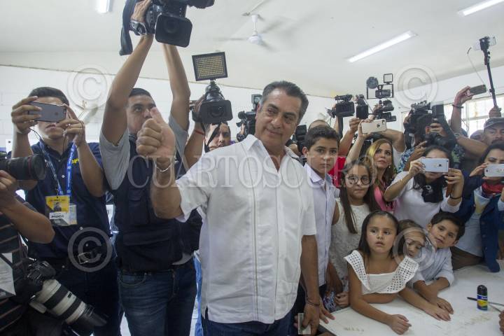 GARCÍA, NUEVO LEÓN, 01JULIO2018.- El candidato presidencial independiente con licencia Jaime Rodríguez Calderón "El Bronco" acudió a la casilla en el centro del municipio de García, Nuevo León para emitir su voto, acompañado de sus hijos menores. FOTO: GABRIELA PÉREZ MONTIEL /CUARTOSCURO.COM