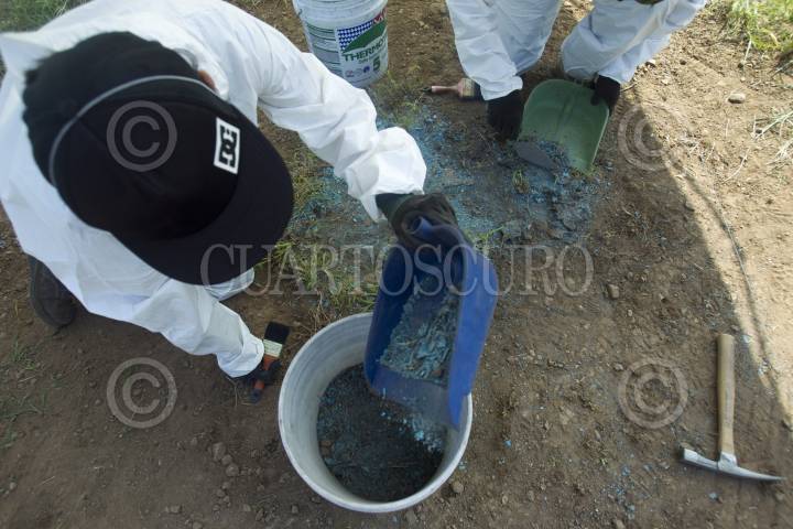 GARCÍA, NUEVO LEÓN, 23SEPTIEMBRE2019.- Un equipo de antropólogos y arqueólogos forenses trabajan en una área del municipio de García, Nuevo León, donde han encontrado más de cien restos óseos en tres meses y se pretende hallar evidencias de una narco-cocina. El equipo forense independiente, cuenta con siete miembros y es el primero creado en México por familiares de personas desaparecidas y se especializa búsqueda de restos humanos. Actualmente existen 3 mil denuncias de personas por desaparición forzada en el estado. FOTO: GABRIELA PÉREZ MONTIEL /CUARTOSCURO.COM