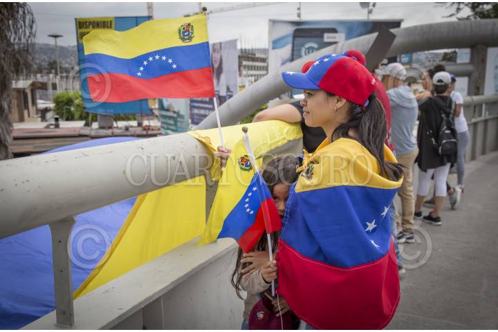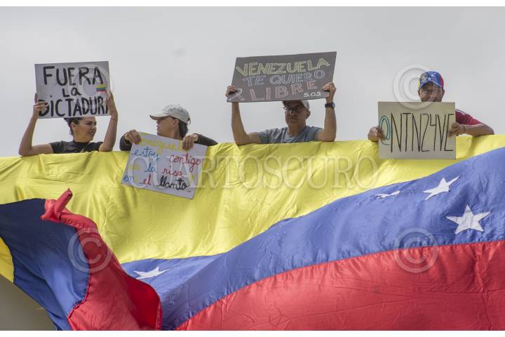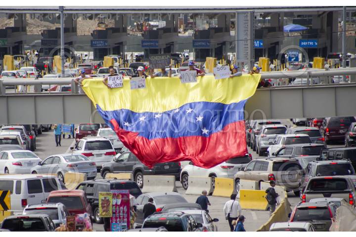 TIJUANA, BAJA CALIFORNIA, 12JUNIO2017.- Ante la complicada situación que enfrentan sus compatriotas, un grupo de venezolanos radicados en Tijuana acudieron a la garita internacional de San Ysidro para pedir a los ciudadanos fronterizos solidarizarse con el pueblo venezolano, además de solicitar la intervención del gobierno estadounidense para derrocar al presidente Nicolás Maduro. FOTO: CHRISTIAN SERNA /CUARTOSCURO.COM