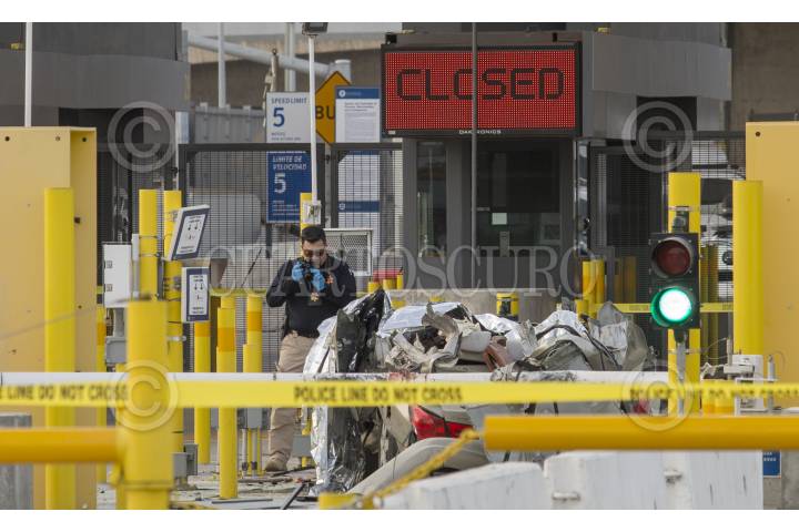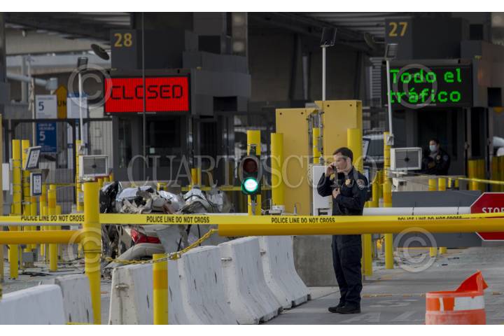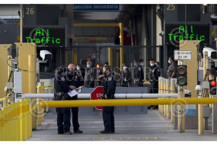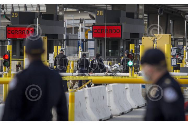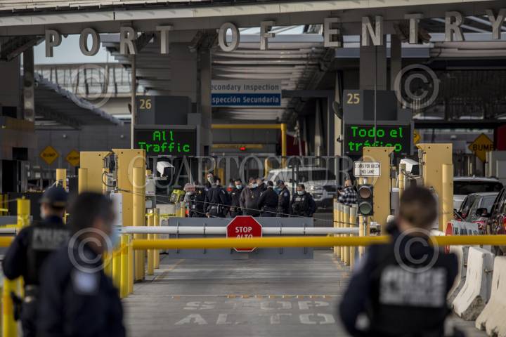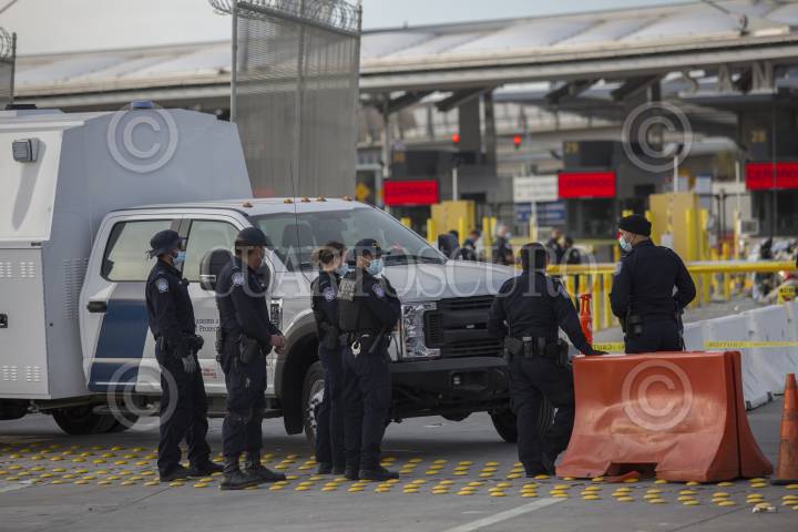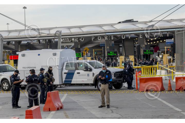 Agentes del CBP ( Oficina de Aduanas y Protección Fronteriza ) instalaron un fuerte operativo en la entrada del cruce fronterizo San Ysidro para evitar que los migrantes ingresen al país estadounidense.