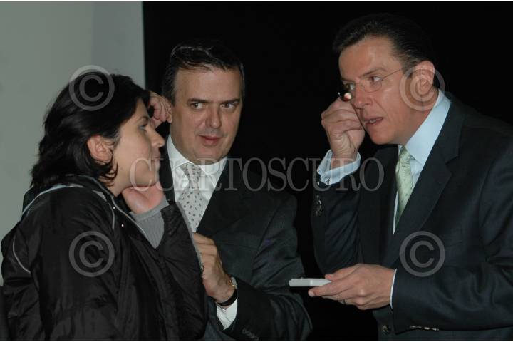 MEXICO, D.F., 09SEPTIEMBRE2009.- Marcelo Ebrard Jefe de Gobierno del Distrito federal y Jorge Garralda durante la entrega de aparatos auditivos a personas con discapacidad. FOTO:LUZ MORENO/CUARTOSCURO.COM